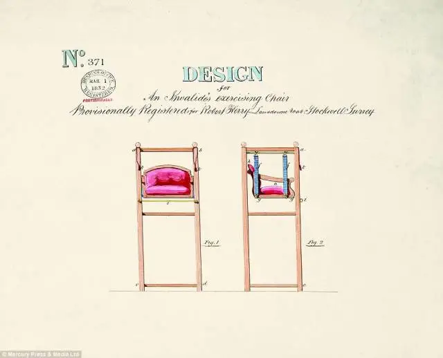 这些发明还能让人十足感受到维多利亚人崇尚爱与美、社会责任感的心,比如这个椅子的发明,是为了病人、残障人士们设计的,方便携带、坐在上面方便转动。发明的名字是“Invalid’s Exercising Chair”,Invalid一词也能显示出对于这些人士的尊重。