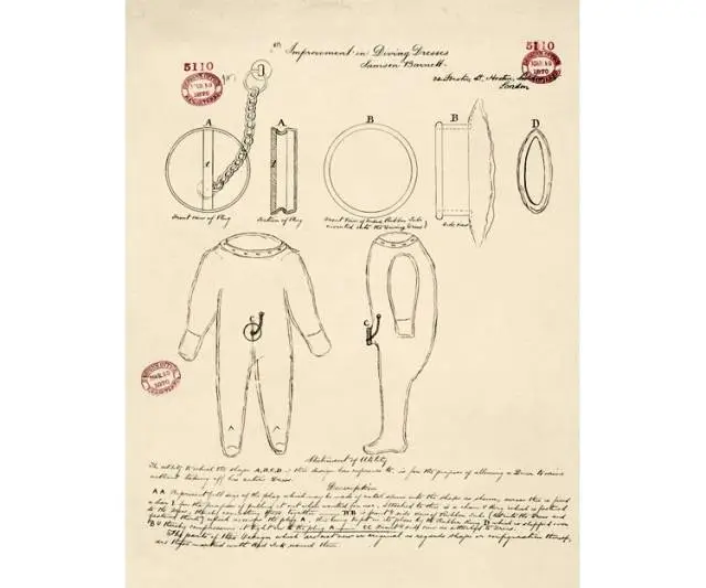 这张图绘制地非常精细严谨,设计思路、使用方式等都在其中体现。这是一个专门为新生母亲发明的“引乳”装置,可以帮助那些哺乳不顺利的母亲更好地挤出乳汁。虽然使用方法相对残酷,但也十足满足功能。