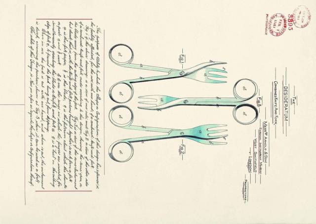 这看上去像一把剪子,其实是把刀和叉组合在了一起——这样能让使用者单手就可以用餐。这样的想法,哪怕在今天,也依旧成立。