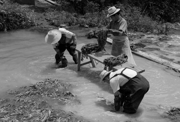 以竹纸为例,《天工开物》中指出:在芒种前后登山砍竹,截断五七尺长,在塘水中浸沤一百天,加工捶洗以后,脱去粗壳和青皮。再用上好石灰化汁涂浆,放在楻桶中蒸煮八昼夜,歇火一日,取出竹料用清水漂洗,更用柴灰(草木灰水)浆过,再入釜上蒸煮,用灰水淋下,这样十多天,自然臭烂。取出入臼,舂成泥面状,再制浆造 纸。这些记载,和后来的民间土法造竹纸过程大体相同。