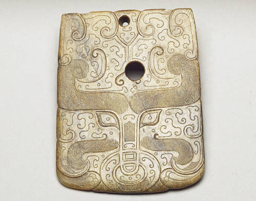 明至清 古玉改製仿古斧珮 附木匣及御製文