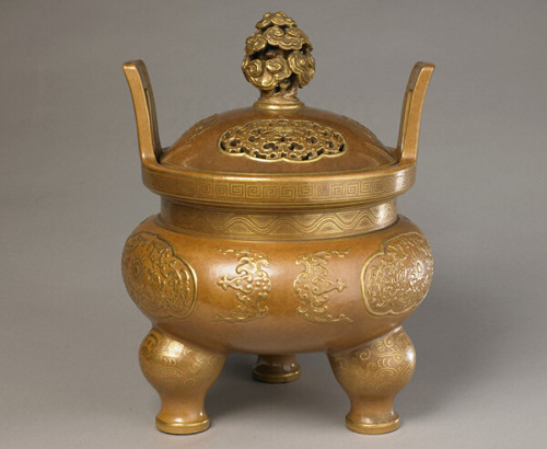 清 乾隆 仿泥金釉朝天耳蓋鼎