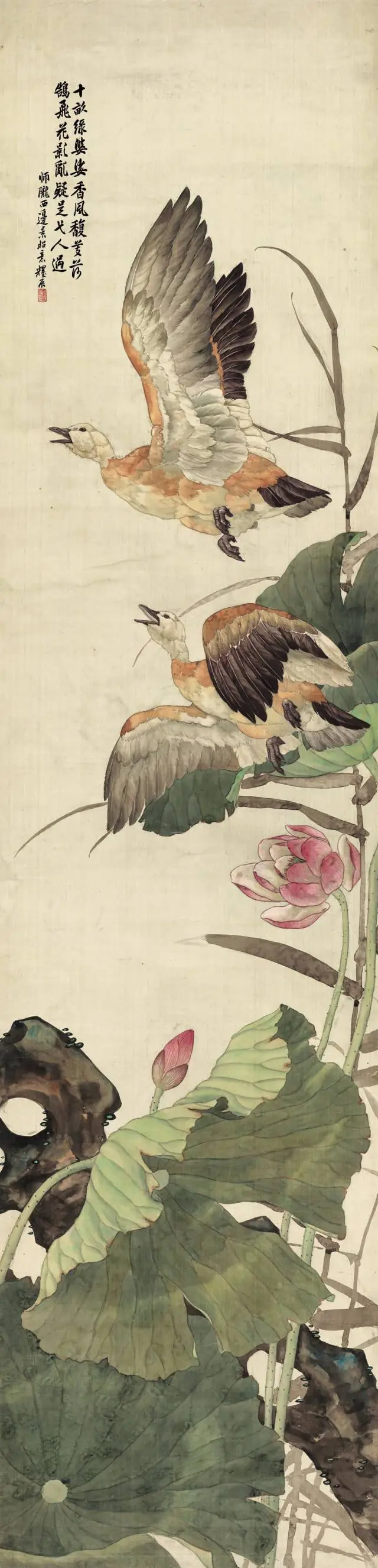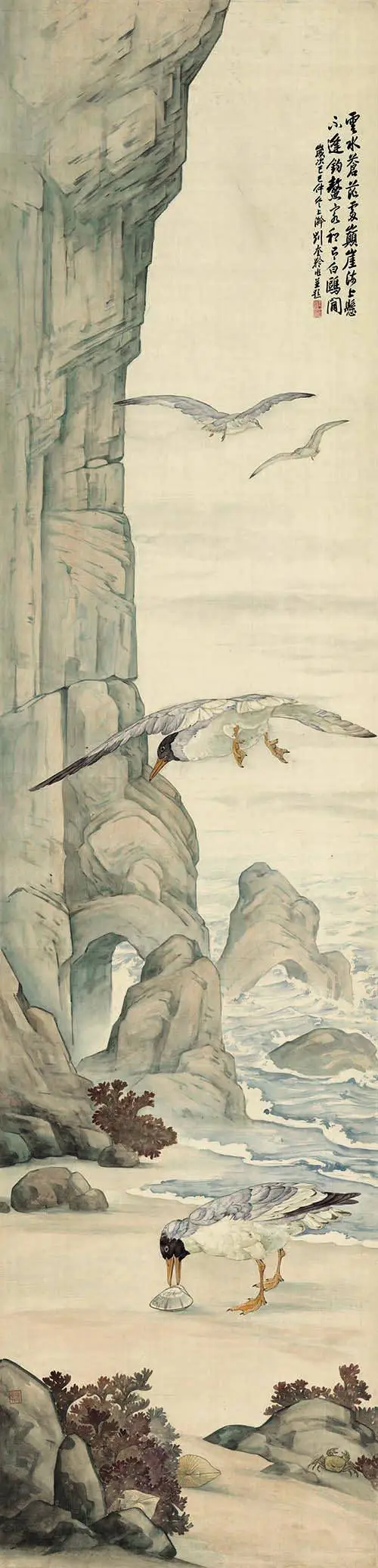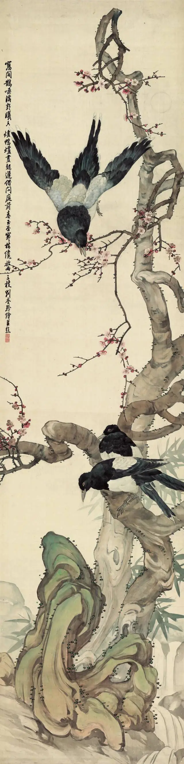刘奎龄(1885─1967),字耀辰,号蝶隐,自署种墨草庐主人。中国近现代美术史开派巨匠,动物画一代宗师,被誉为“全能画家”,能工善写,擅长动物、植物、人物画及山水画,他描摹的动物种类之多,范围之广至今无人可追;他善于“势”的营造,绘画作品“虚处不嫌窗框松,实处勿感板结紧”,其画风华滋清润,厚劲灵动,意境深邃。刘奎龄偏居津门一隅,语讷志坚,孤身前行,其创作恰与徐悲鸿的“尽精微,致广大”契合。他钟情于日本绘画,关注横山大观和竹内西凤等代表性人物, 学习借鉴朦胧派、狩野派、大和绘、汉画等古典技法精粹。他是传统派和中西融合派的中坚,他从古典主义、文艺复兴、浪漫主义、现实主义甚至印象派光色运用、油画技术以至夸张变形中吸取营养,他注意到西方现代艺术与中国传统艺术在创造精神上的相似性,他光大了传统写实技法,其艺术风格影响了惠孝同、刘子久、陈少梅、刘继卣、何家英等北派艺术家。其代表作《上林春色图》深得徐悲鸿高度赞扬,并被其赞誉为“当代中国画坛翎毛第一人”。